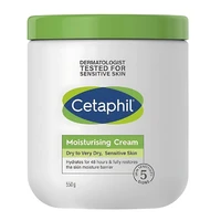 Cetaphil Moisturizing Cream is an intensive moisturizer designed to address very dry or damaged areas of the skin. It boasts a quick-absorbing formula that provides immediate soothing and softening effects, even on sensitive skin. Fragrance-free and non-comedogenic, it is suitable for use on damaged skin associated with common skin conditions and following dermatological treatments. The formulation of Cetaphil Moisturizing Cream incorporates a superior system of extra-strength emollients and humectants, clinically proven to bind water to the skin and prevent moisture loss. This results in long-lasting relief for severely dry skin, with the non-greasy formula being particularly effective for areas such as hands, feet, elbows, knees, and other areas requiring intensive moisturization. Furthermore, the cream defends against 5 signs of skin sensitivity, including a weakened skin barrier, irritation, roughness, tightness, and dryness. It is enriched with a dermatologist-backed blend of niacinamide (vitamin B3), panthenol (vitamin B5), and hydrating glycerin, which work synergistically to improve the resilience of sensitive skin. Niacinamide or vitamin B3 is an essential vitamin for the skin with both antioxidants and hydrating properties. It locks in moisture effectively. Panthenol or pro-vitamin B5 is the active form of vitamin B5. This natural ingredient provides soothing effects to the skin. It also has natural moisturizing properties which help skin retain moisture and remain soft, smooth, and radiant. Glycerin is a naturally occurring compound. It is a water-soluble emollient that softens and smooths skin. It also produces long-lasting moisturization by attracting water into the skin and helping to retain skin moisture, leaving it appearing healthy and youthful. Tocopherol or vitamin E has an antioxidant effect that helps protect the skin from surface free radical damage. It also soothes skin with a hydrating effect. Sweet almond oil, made from almonds, has emollient properties which allow it to smoothen and soften dry, irritated skin and tackle rough skin textures. It also contains vitamin E for its antioxidant effects. Additionally, 97% of users reported increased skin hydration over time. In summary, Cetaphil Body Cream is a dermatologist-recommended solution for individuals seeking effective moisturization for very dry or damaged skin, with a focus on addressing sensitivity and maintaining skin health.